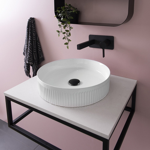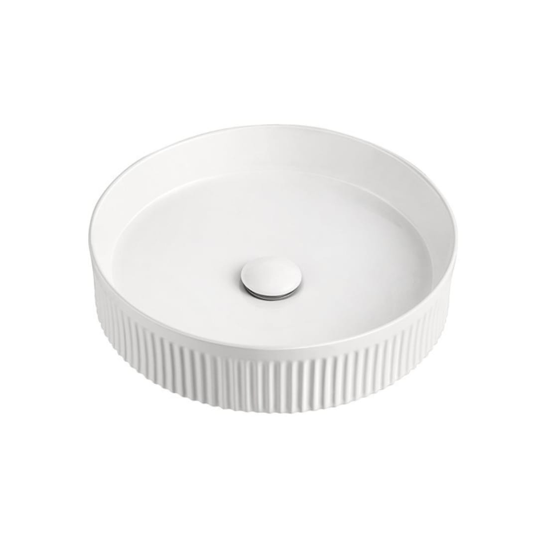 Lavabo ovale soprapiano,  senza foro troppo pieno. Diametro 41cm, altezza 10 cm. Materiale in porcellana, finire bianco opaco.