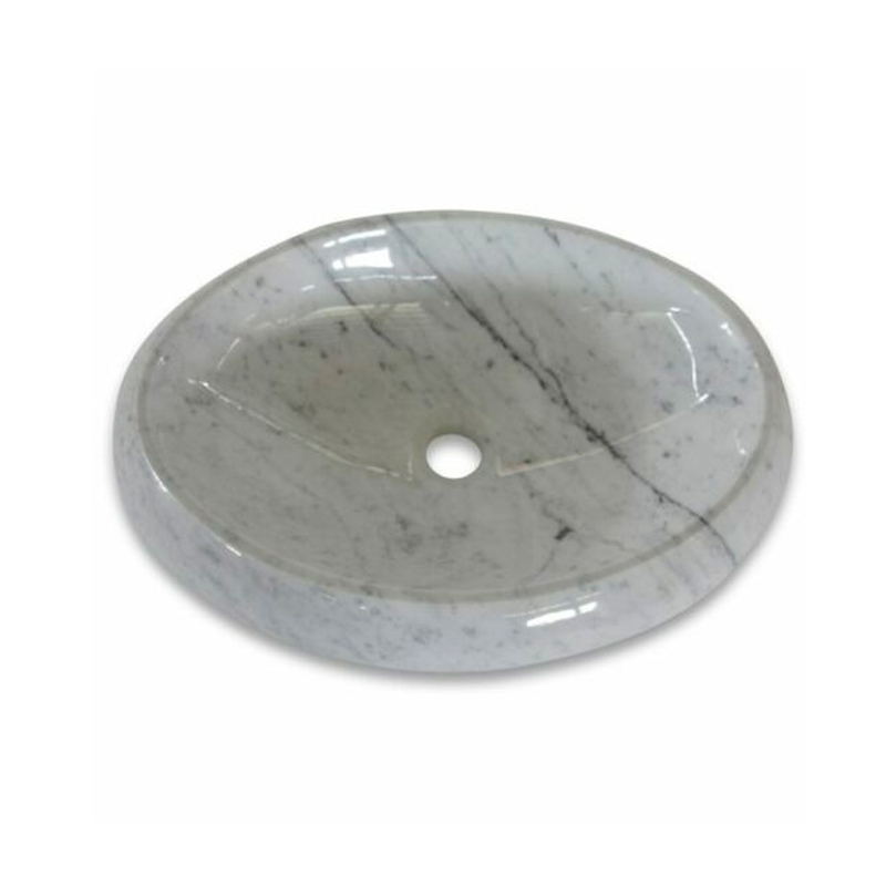 Lavabo soprapiano ovale de 55x40x13 cm, senza foro troppo pieno. Materiale in marmol carrara.