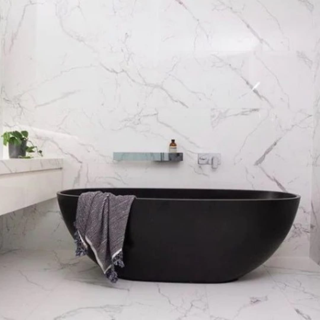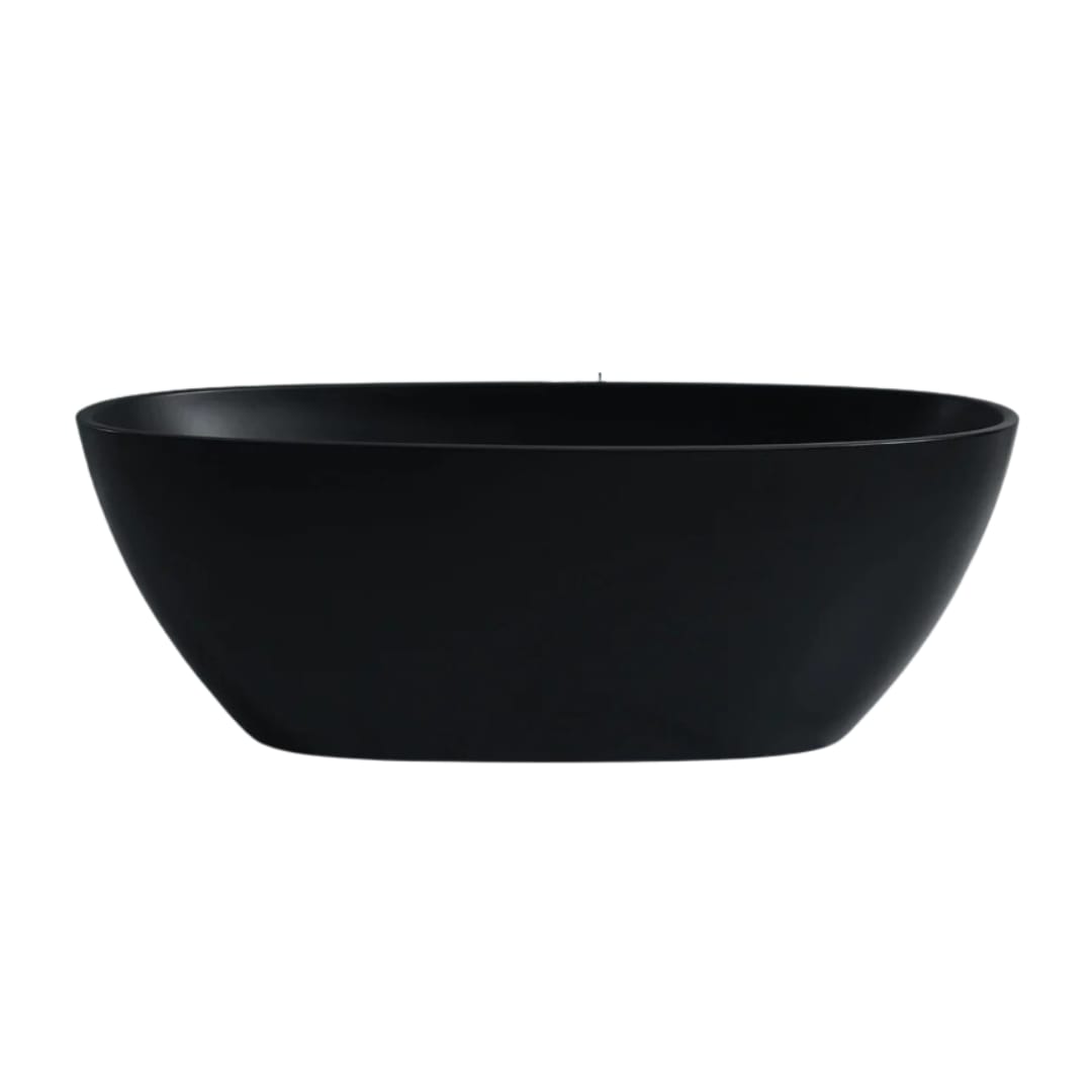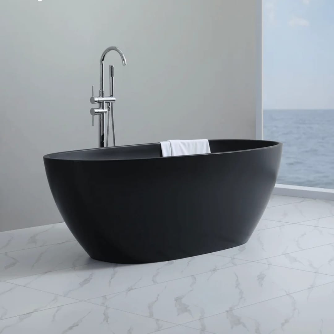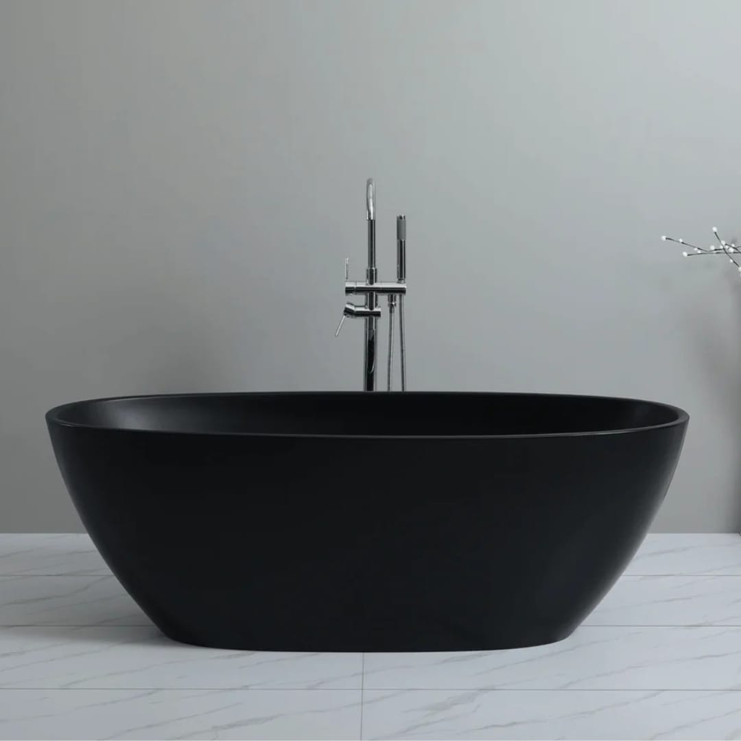 Vasca de pedestallo, misure 1,7 m x 78 cm x 56 cm. Materiale di superficie solida, finuture nero opaco.